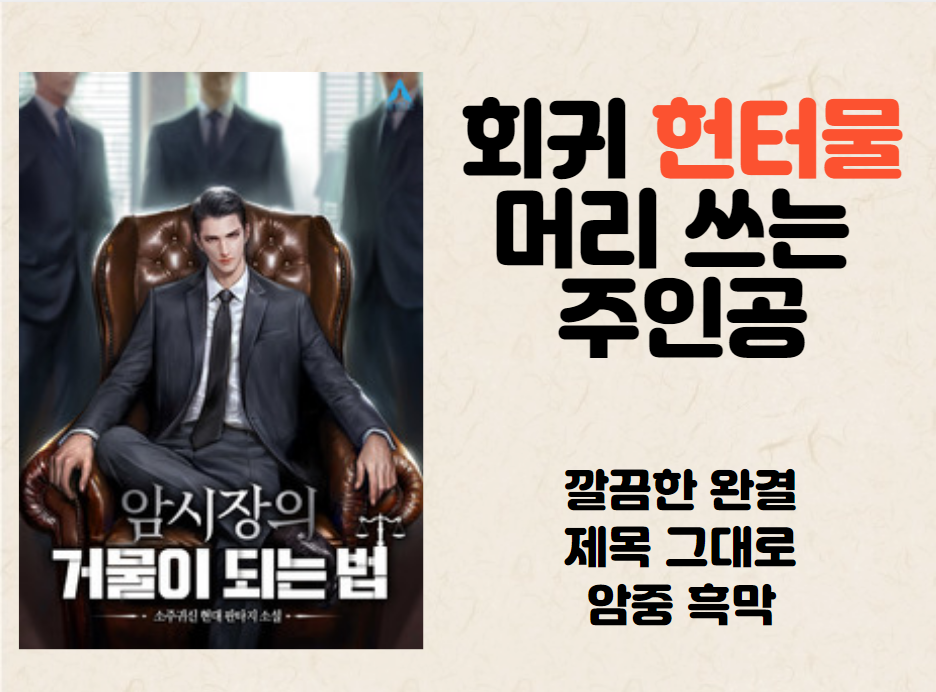 주인공이 미리 알고 있는 정보를 바탕으로 장사를 하는 이야기라 머리를 쓰는 주인공이라고 볼 수 있습니다. 그래서 암시장, 기업, 협잡, 암중 흑막. 이런 키워드가 어울리는 소설입니다.